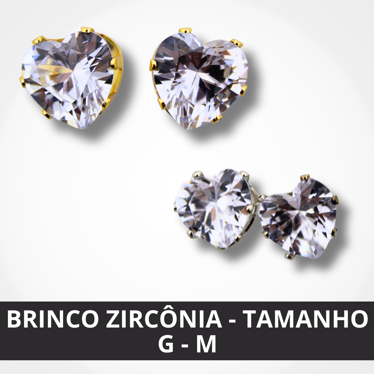 Com formato de coração e acabamento em zircônia de alta qualidade, ele está disponível nos tamanhos M (médio) e G (grande), para você escolher o que mais combina com seu estilo.