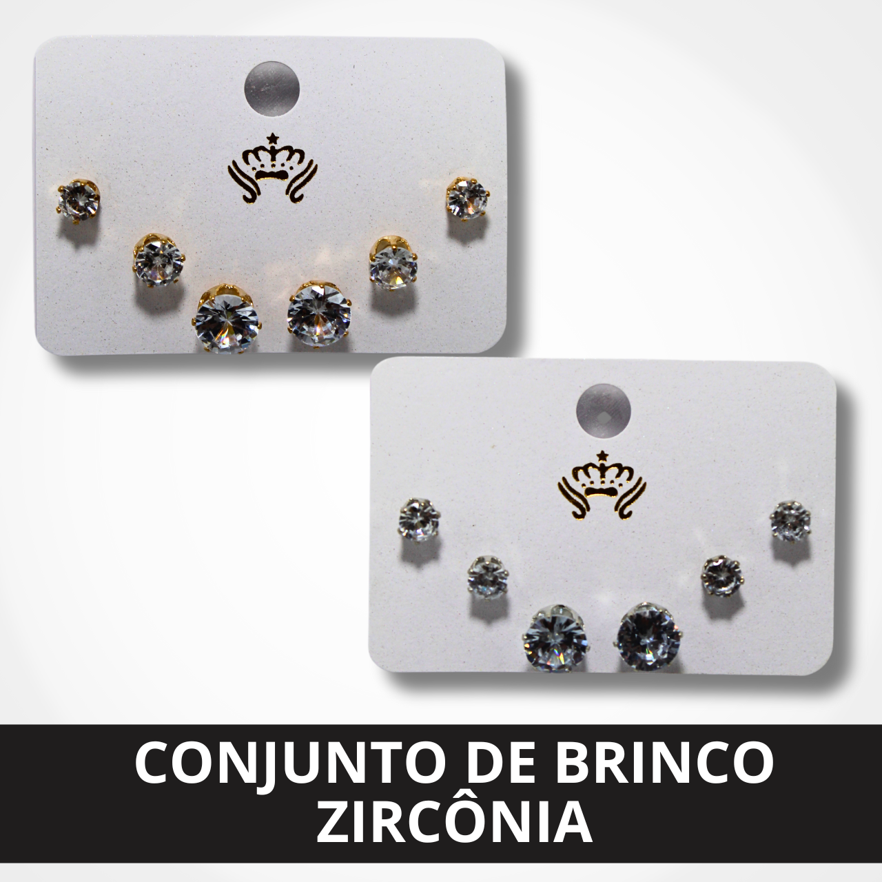 O conjunto de brinco zircônia é composto por brincos com zircônias, que oferecem brilho e sofisticação.