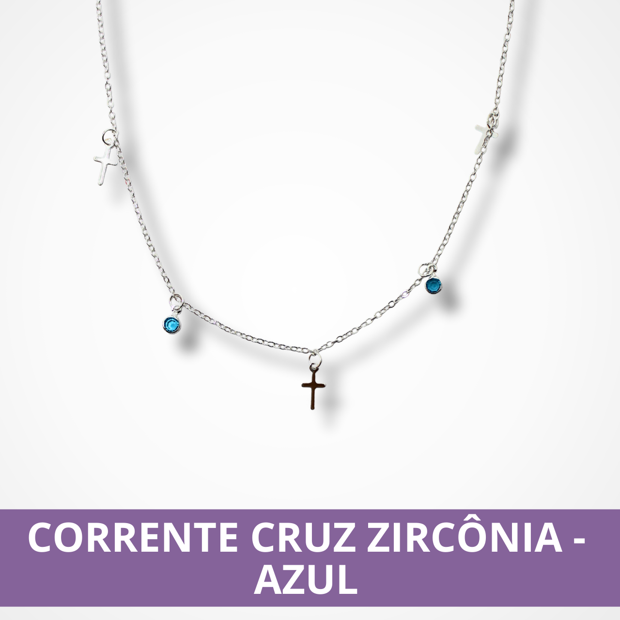 CORRENTE CRUZ ZIRCÔNIA AZUL