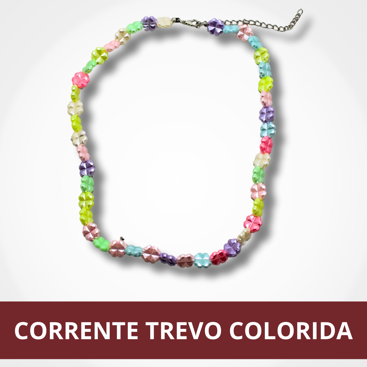 A corrente trevo colorida é um acessório que apresenta pequenos trevos.