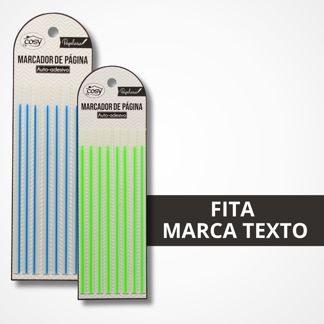 Possui 8 blocos por unidade, com 1 cor por cartela e 20 marcadores em cada bloco, totalizando 160 fitas.