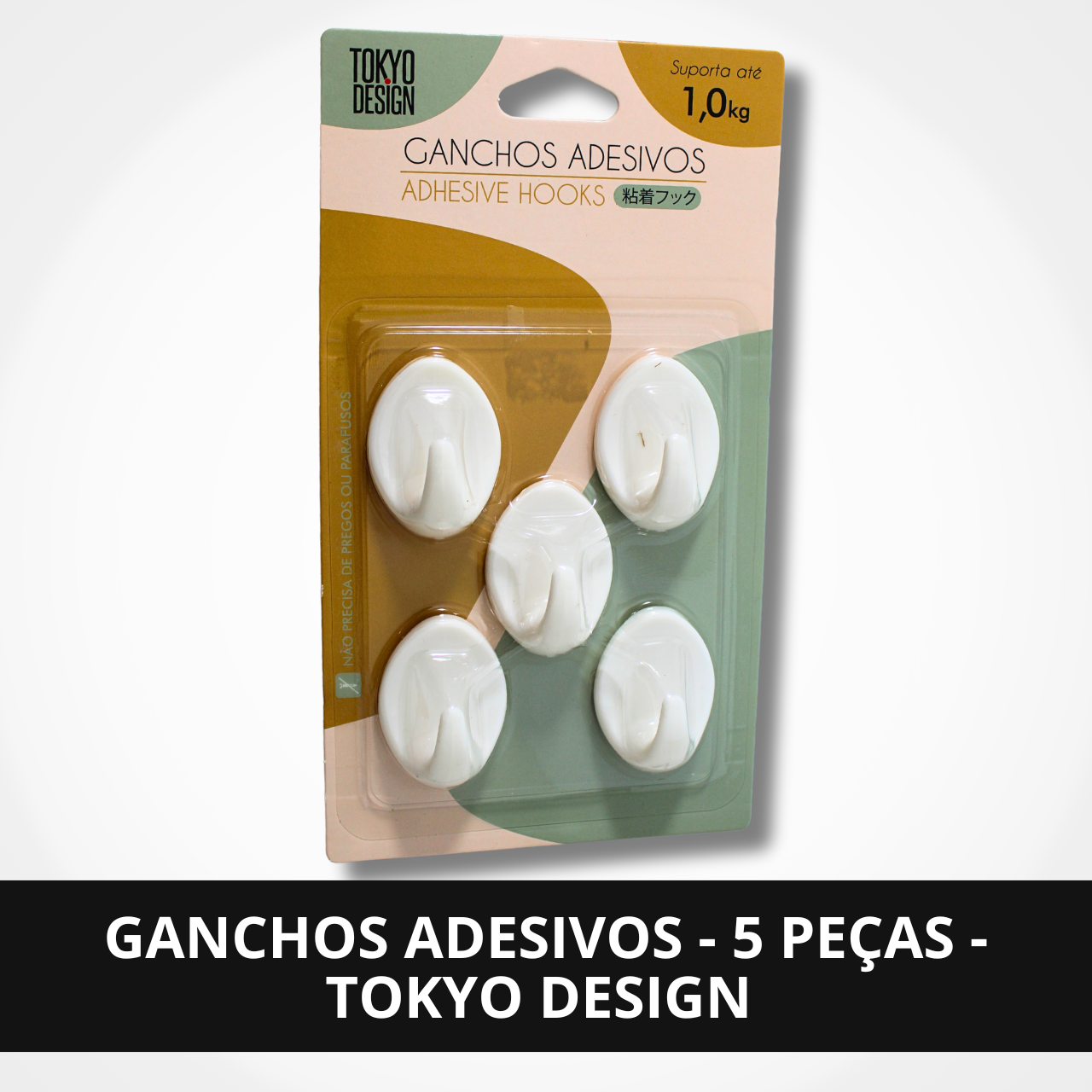Kit com 5 ganchos adesivos da Tokyo Design, ideal para organização prática e sem furos.