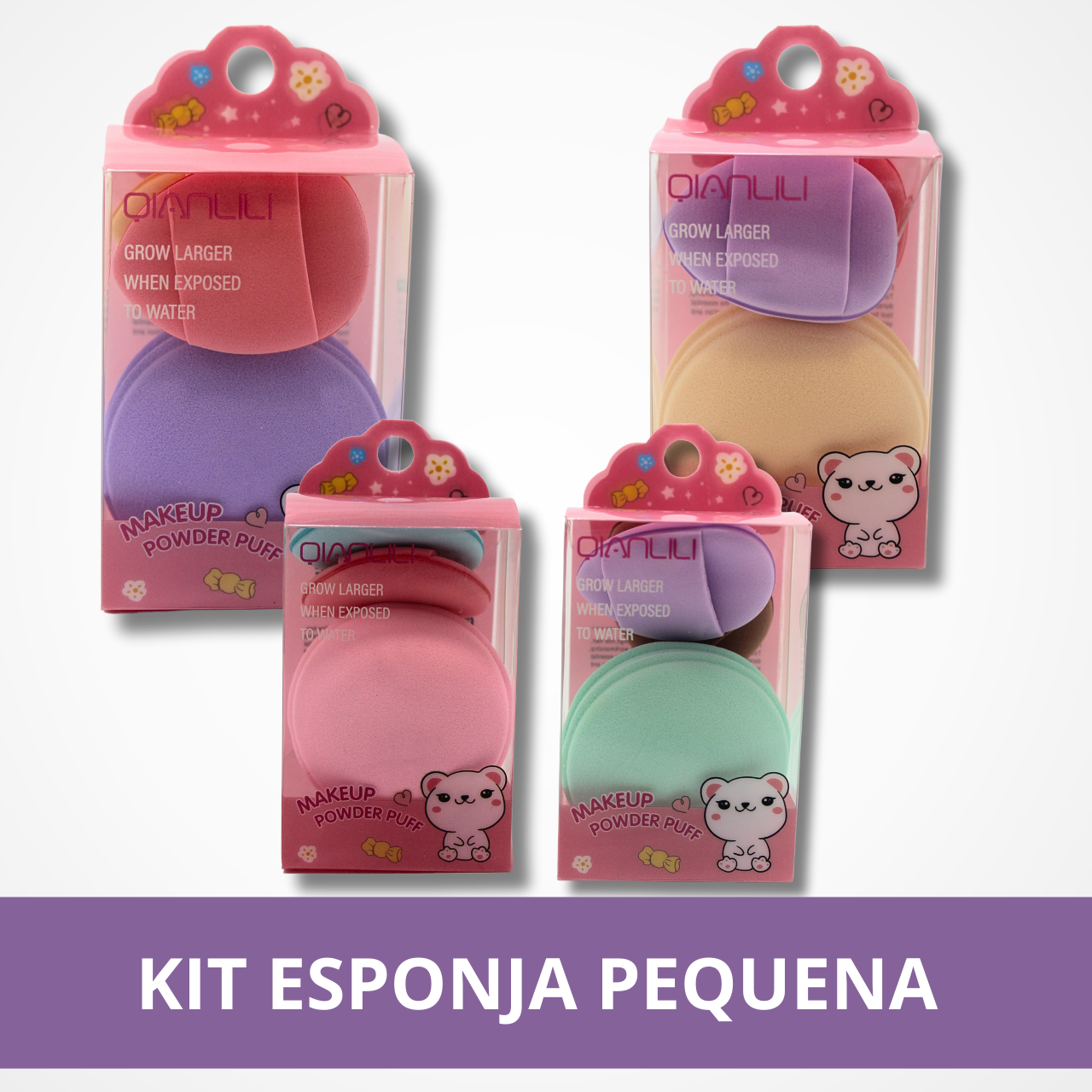 Kit Esponja Pequeno é perfeito para a aplicação uniforme de maquiagem e cuidados diários com a pele.