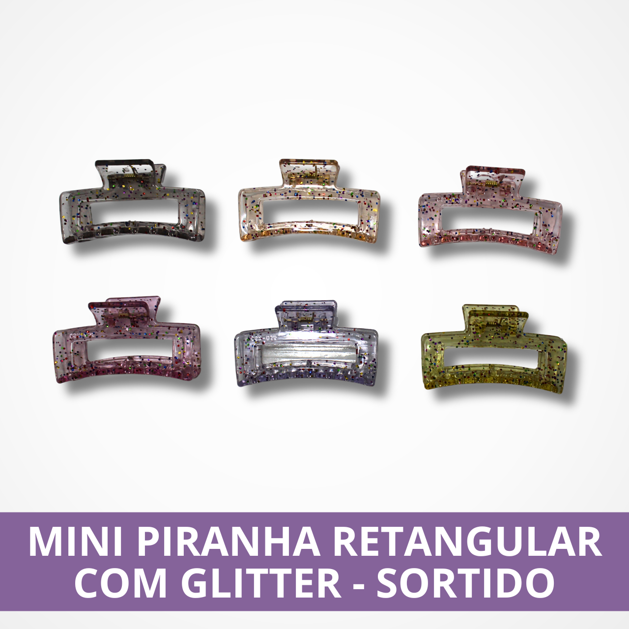 MINI PIRANHA RETANGULAR COM GLITTER - SORTIDO