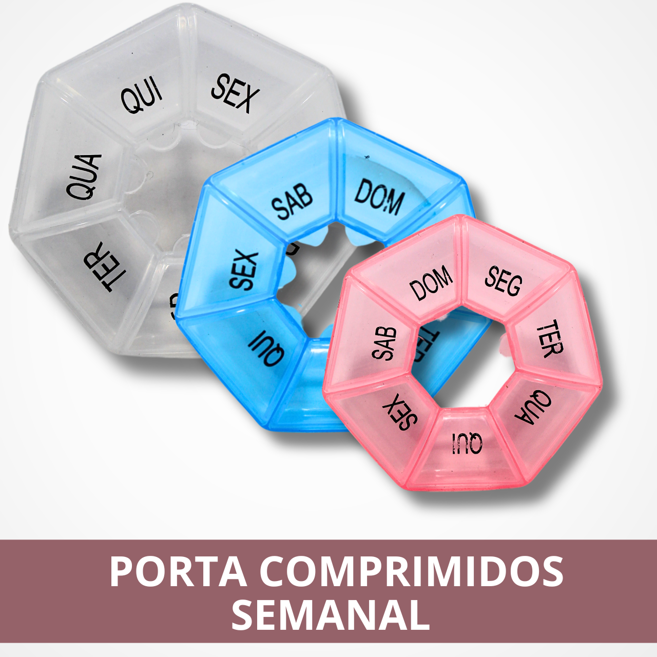 Porta remédios de plástico para você guardar e levar seus remédios para todo lugar de forma prática, com divisórias entre os dias da semana para você se organizar para tomar seus remédios.
