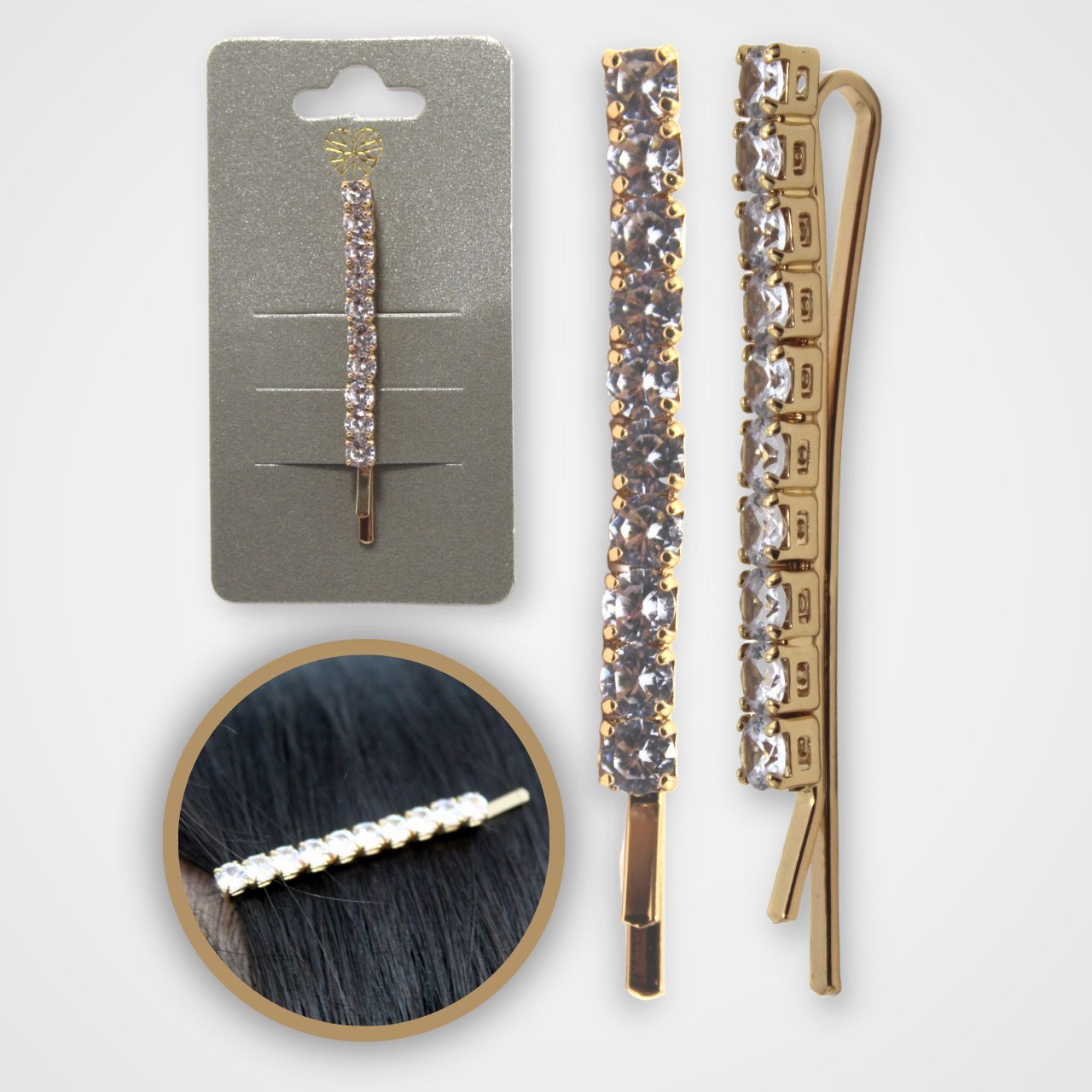 Grampo de cabelo dourado com strass para dar um toque especial ao seu penteado