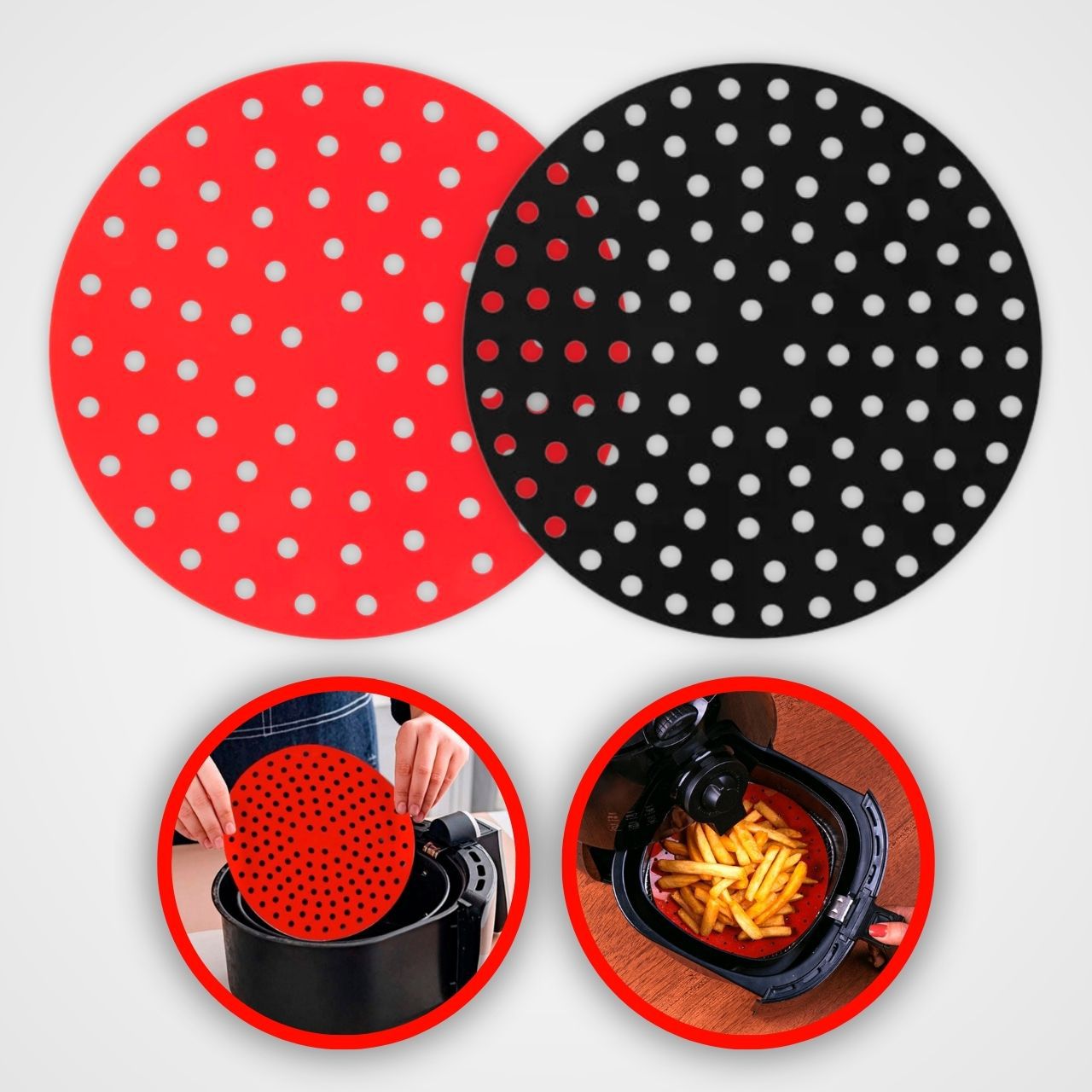 Tapete Redondo Cozimento para Fritadeiras Elétricas, resistente a altas temperaturas. 100% Silicone antiaderente e reutilizável. Protege o Cesto de sua fritadeira. Ideal para assar biscoitos, massas, pães e tortas.