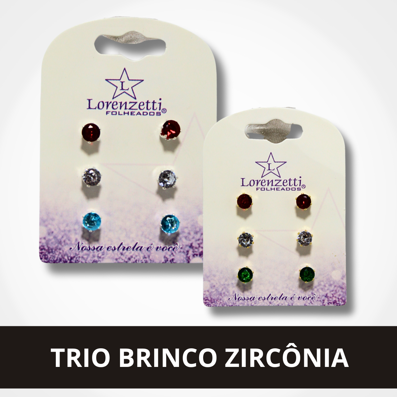 O Trio Brinco Zircônia é um modelo de brinco composto por três pedras de zircônia, geralmente dispostas de forma elegante e simétrica.