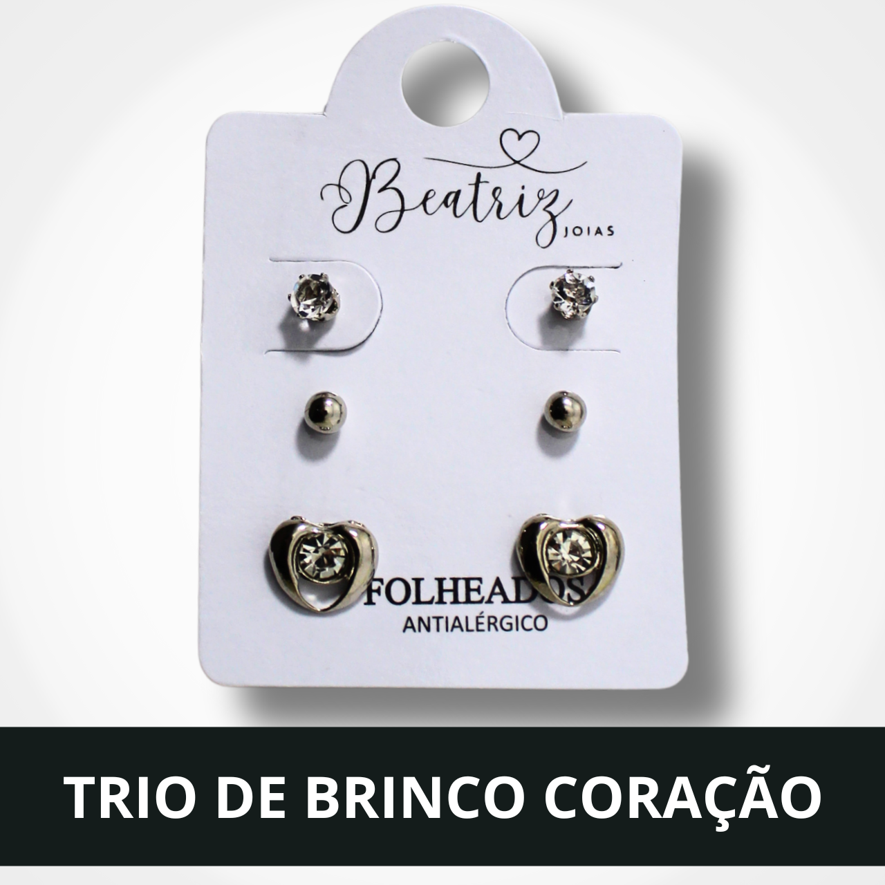Encante-se com o charme do Trio de Brinco Coração, um conjunto delicado que expressa amor, doçura e estilo em cada peça.